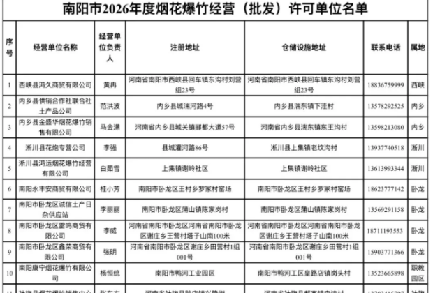 邓州2026年烟花爆竹合法批发单位清单来了